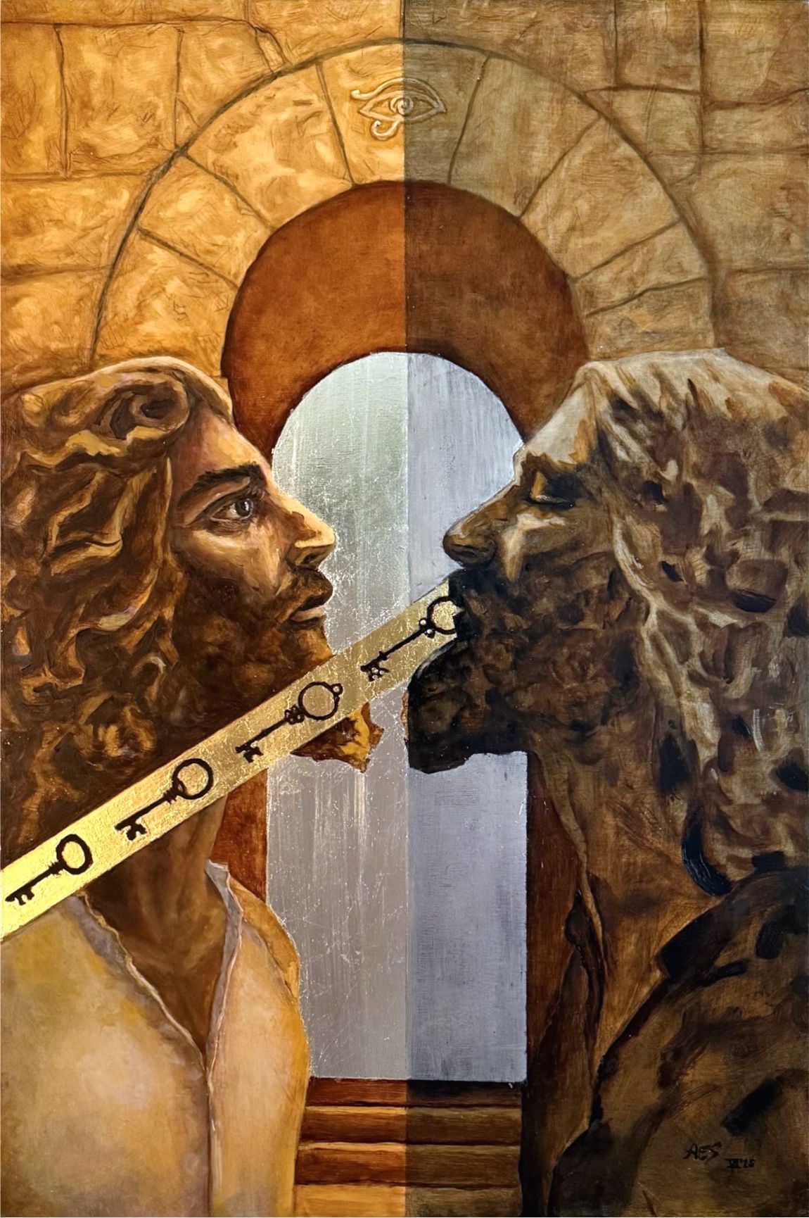 Here, the keys are shown as light moving from mouth to ear, from one soul to another. They suggest something living and active, not held, but entrusted. They are received with readiness and carried forward through covenant.